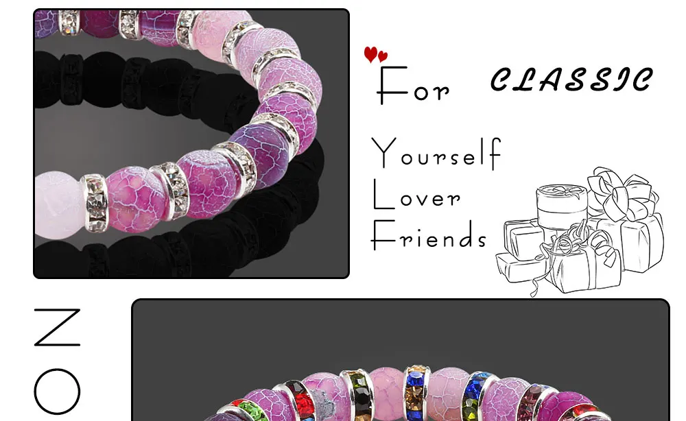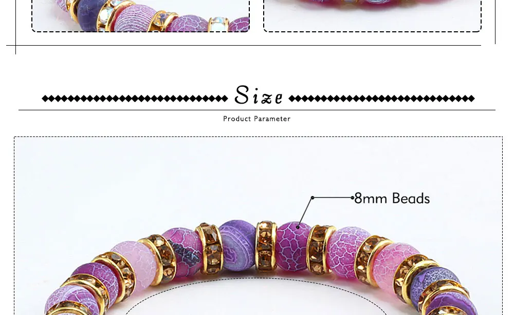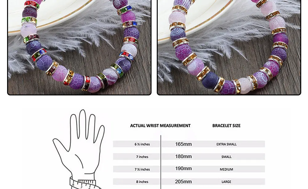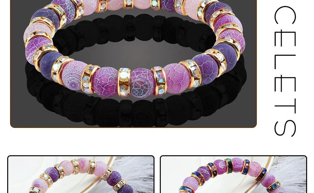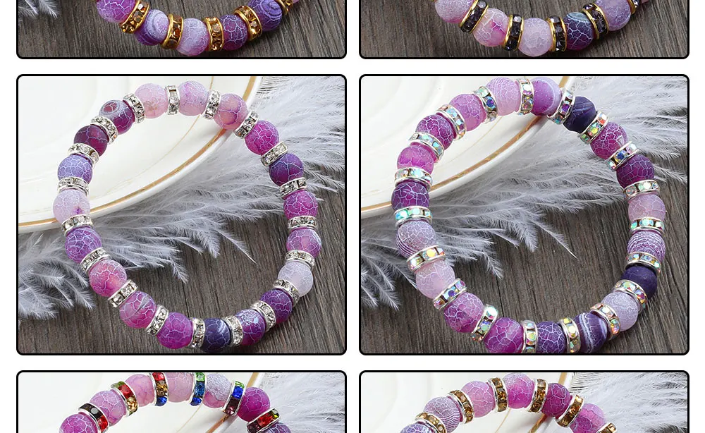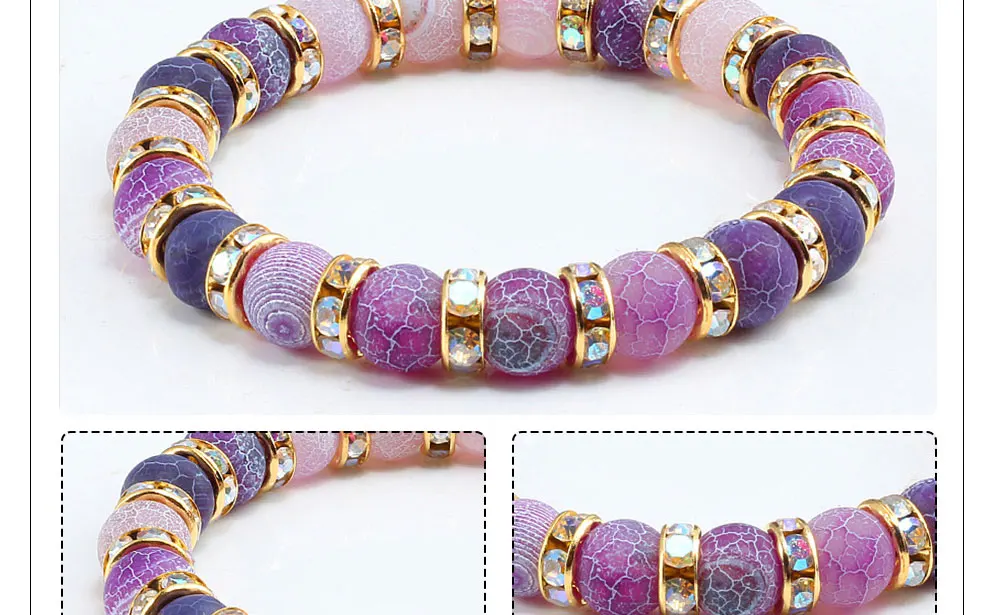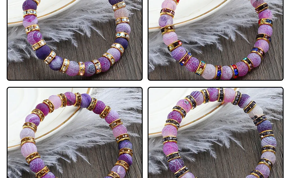 Fashion Handmade Women's Natural Stone Beaded Bracelets Men Jewelry Purple Weathering Beads Strand Bracelet For Couples Pulseras Gifts