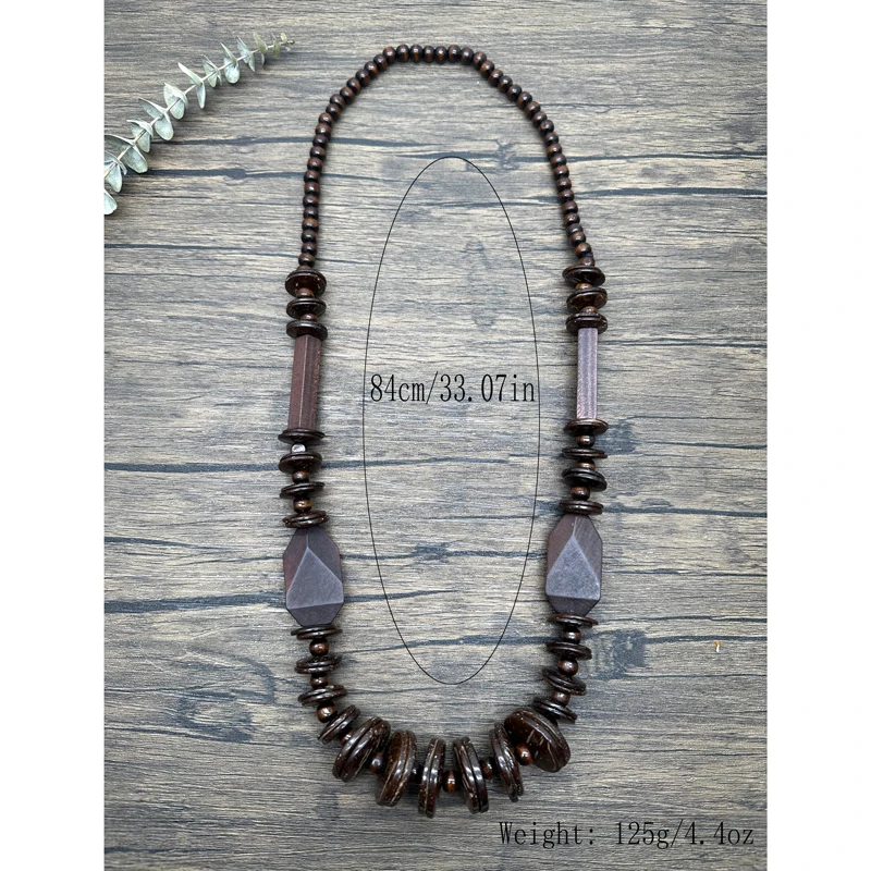 Buy Handmade Brown Geometry Wood Necklace & Pendant Vintage Statement Beads Chain Choker Long Wooden Jewelry Party Gifts Bohemian